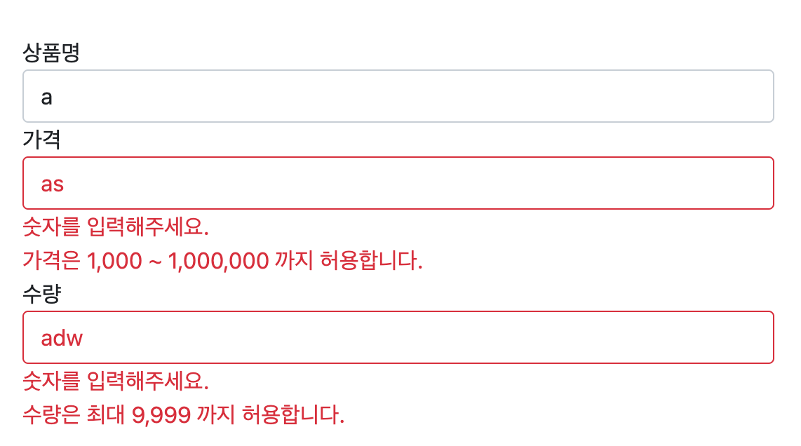 - 상품 이름은 필수입니다 / 필수 값입니다