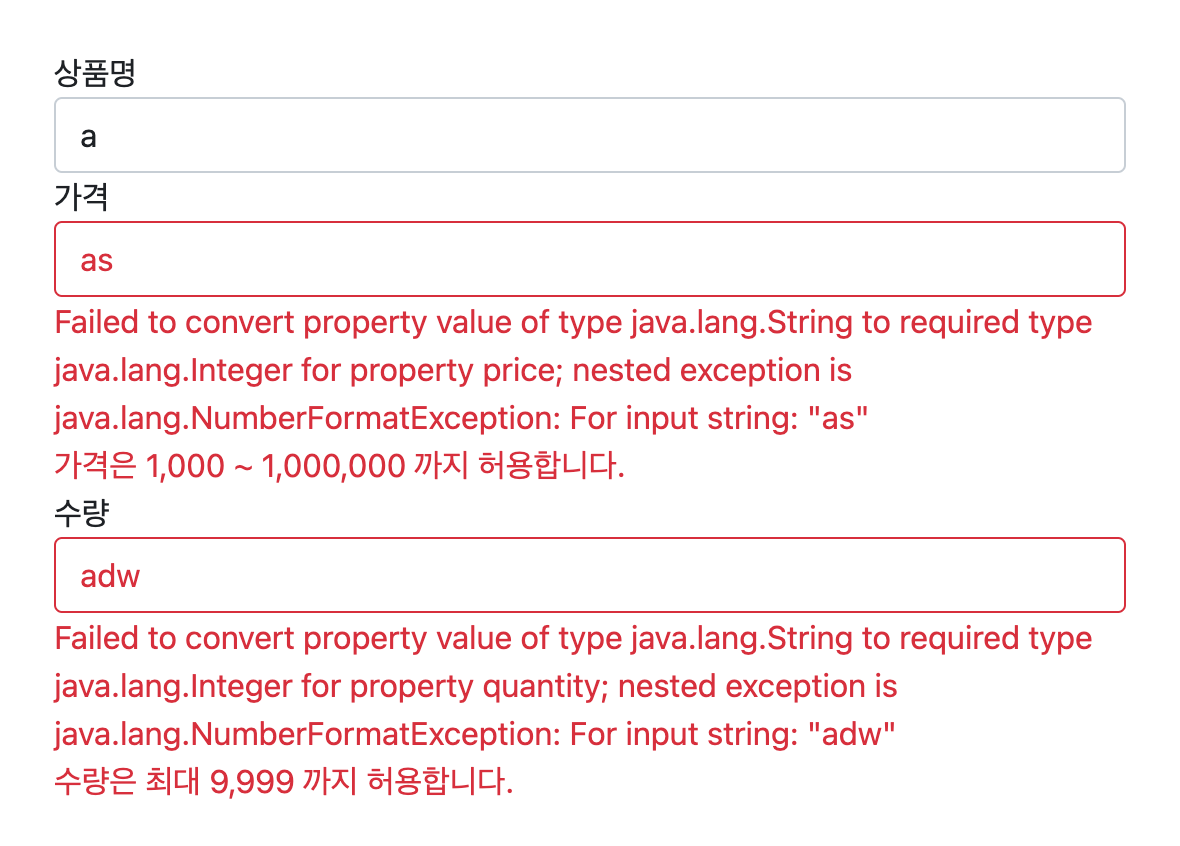 로그를 확인해보면 typeMismatch.item.price, typeMismatch.price, .... 라는 내용이 나온다.
