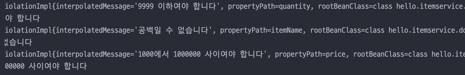 ConstraintViolation을 사용하면 검증 오류가 발생한 객체, 필드, 메세지 정보 등 다양한 정보를 확인할 수 있다.