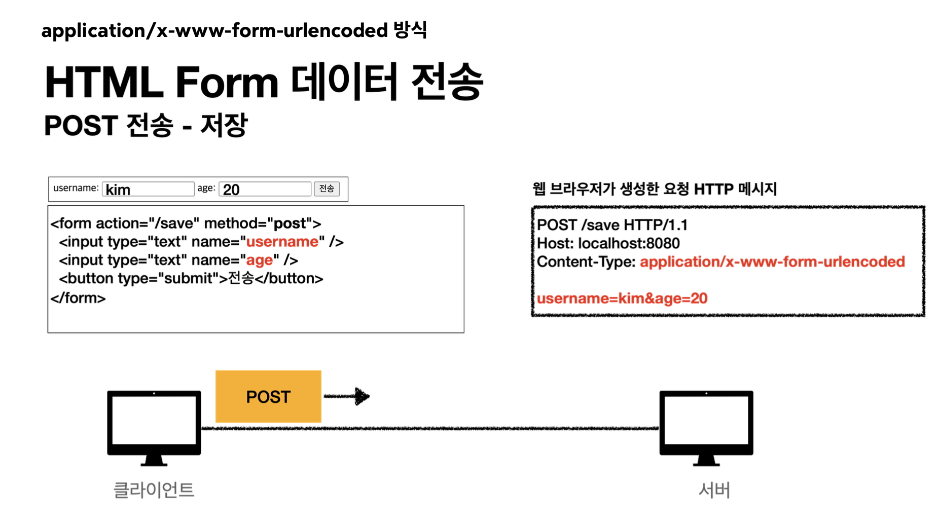 - → 일반 form 데이터 전송 (username=kim&age=20)