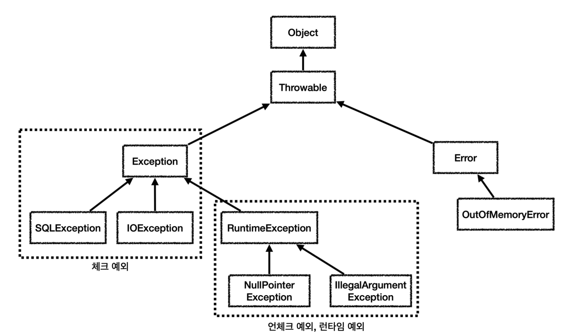 예외도 객체이기 때문에 Object가 최상위에 있다.