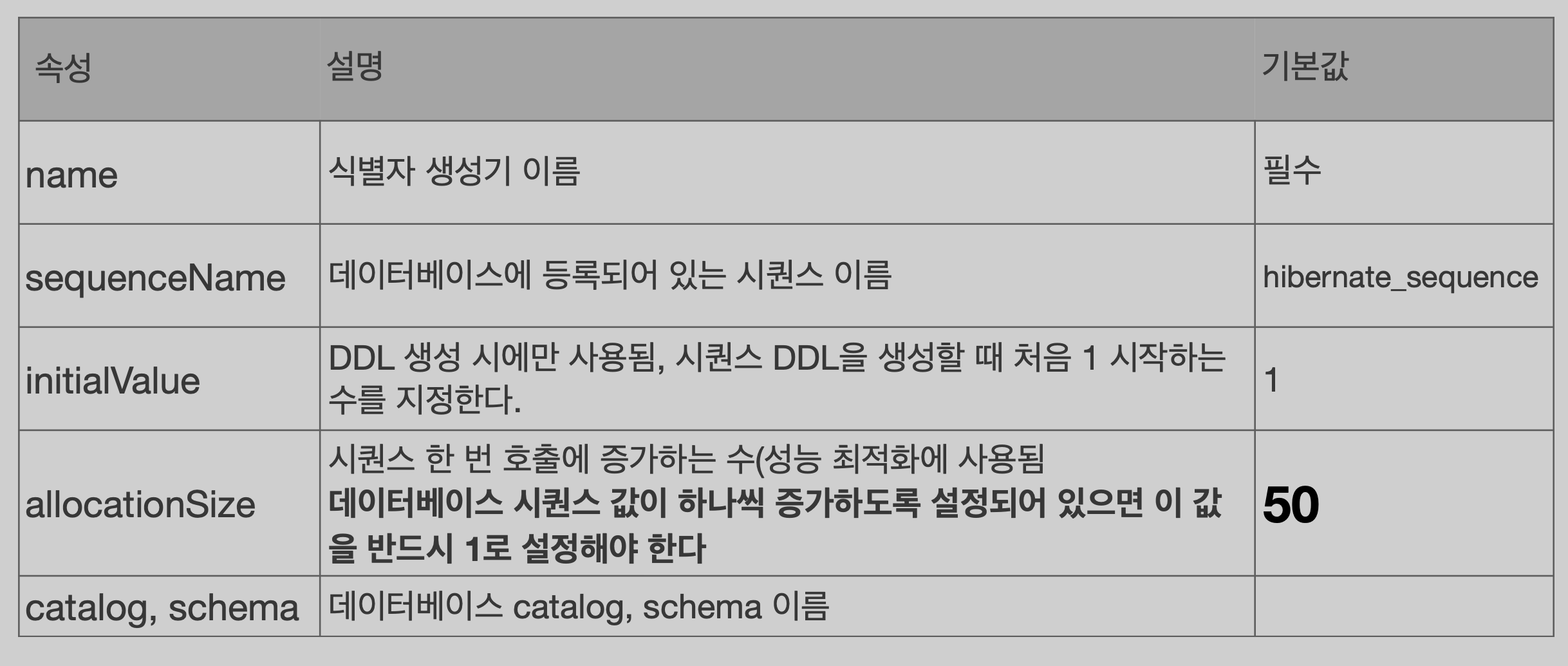 sequenceName = “MEMBER_SEQ", //매핑할 데이터베이스 시퀀스 이름