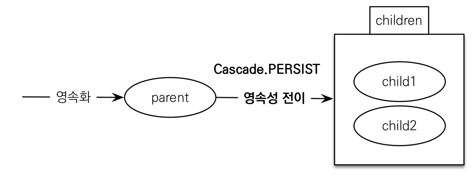 위의 경우 em.persist(parent);, em.persist(child); 처럼 child를 일일이 영속화 시켜 줘야한다.